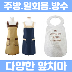 심쿵기프트에서는 일회용 앞치마, 부직포 앞치마, 단색 앞치마, 방수 앞치마, 롱앞치마, 식당 손님용 목걸이 앞치마 등 다양한 종류의 앞치마를 준비하고 있습니다.