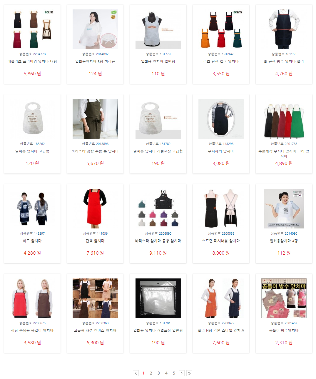 1. 다양한 종류의 앞치마