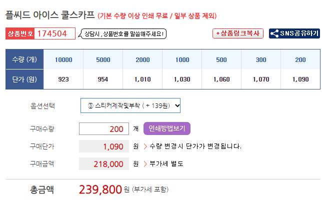 - 단가: 1,090원(스티커 제작 부착한 가격)