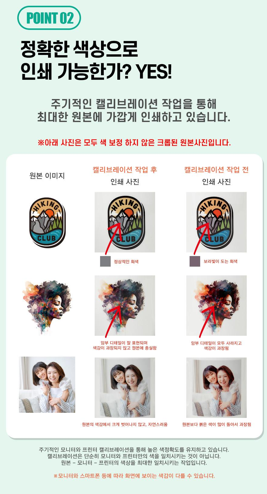 - 정확한 칼리브레이션 작업: 원본에 가깝게 인쇄할 수 있도록 칼리브레이션 작업을 통해 선명한 컬러인쇄를 구현해요.