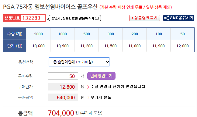 골프우산 제작 비용