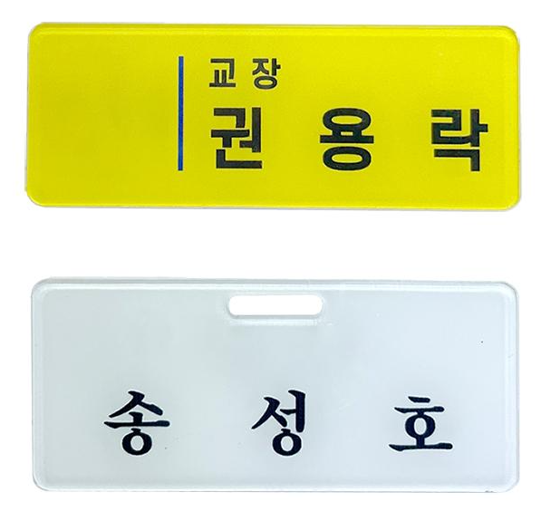아크릴명찰은 가볍고 저렴하며, 다양한 디자인과 색상을 선택할 수 있다는 장점이 있습니다. 투명한 아크릴로 제작된 명찰은 현대적이고 세련된 느낌을 주며, 색상과 글자의 조합을 자유롭게 선택할 수 있어 개성을 표현하기에 좋습니다.