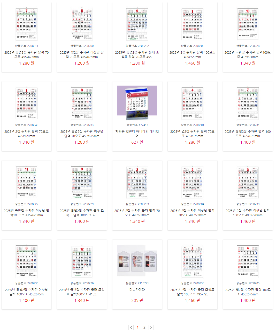 1. 2025년 벽걸이 달력 제작