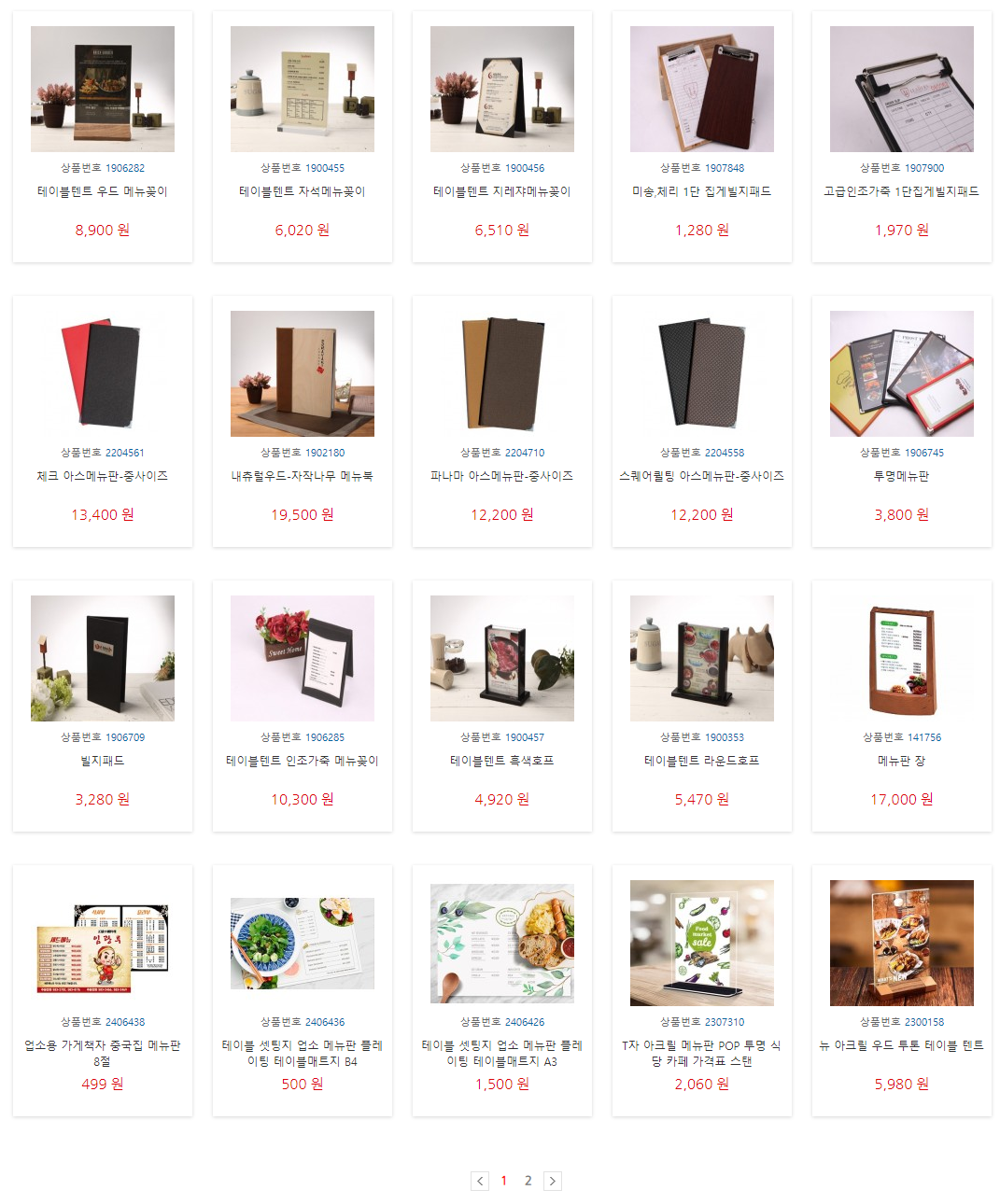 1. 식당 메뉴판 제작
