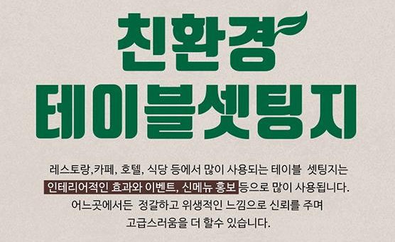 종이 식탁 테이블매트와 테이블 수저 세팅지는 단순히 기능적인 역할을 넘어서, 고객과 매장을 연결하는 효과적인 판촉물입니다. 이를 통해 매장은 고유의 브랜드 스토리와 메시지를 전달할 수 있으며, 고객은 매장을 더욱 특별하게 기억하게 됩니다. 다양한 디자인과 메시지로 제작된 테이블매트와 세팅지는 고객에게 매장만의 개성과 품격을 느끼게 합니다. 이처럼 작은 디테일이지만, 고객의 재방문을 유도하는 데 강력한 효과를 발휘합니다.