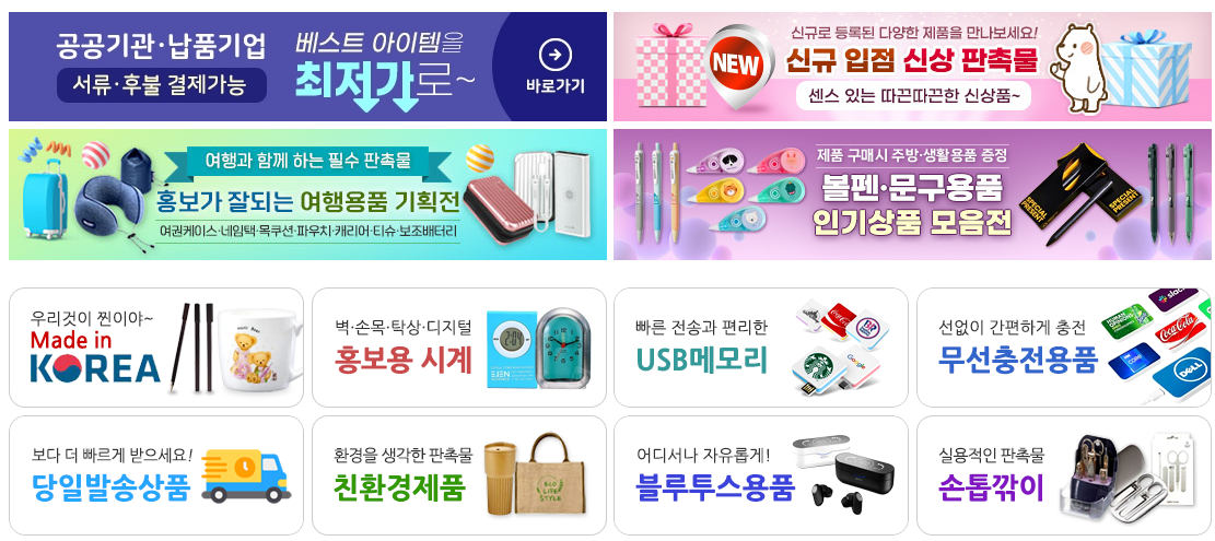 | 판촉물 사이트 추천, 대량 및 소량판촉물제작 쇼핑몰 가격 저렴한 업체 (0) | 2024.09.10 |