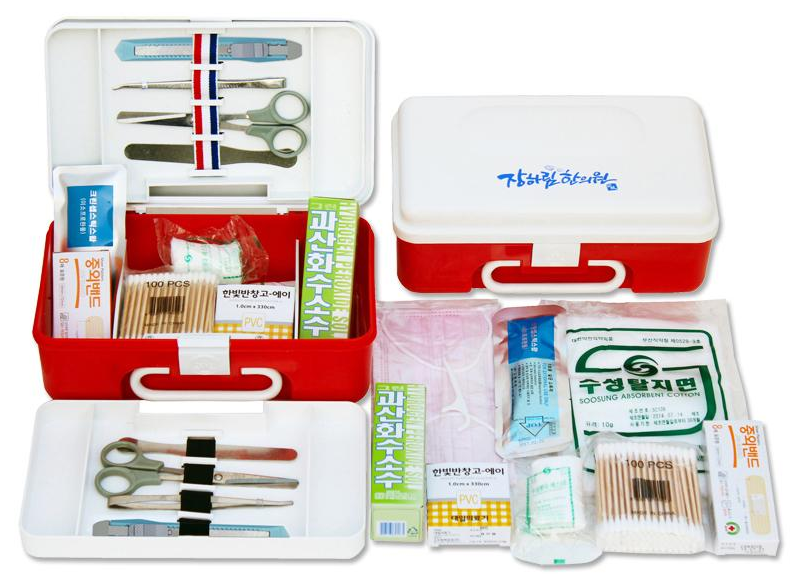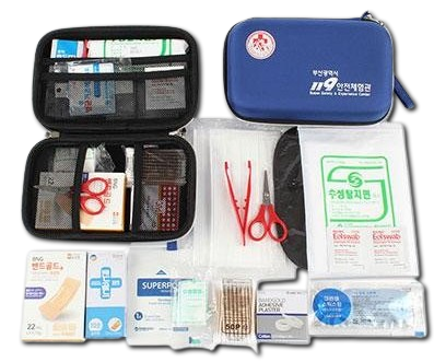 - 필수 의료품: 소독약, 밴드, 거즈, 면봉, 알코올솜 등 응급처치에 필요한 의료품을 기본으로 구성하여 실용성을 높입니다.