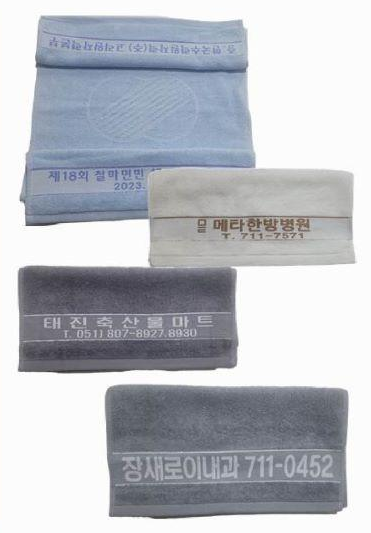 - 로고 및 문구의 가독성: 작은 글씨나 복잡한 디자인은 수건에 인쇄될 때 알아보기 어려울 수 있으니 간결하고 선명한 디자인을 선택하는 것이 좋습니다.