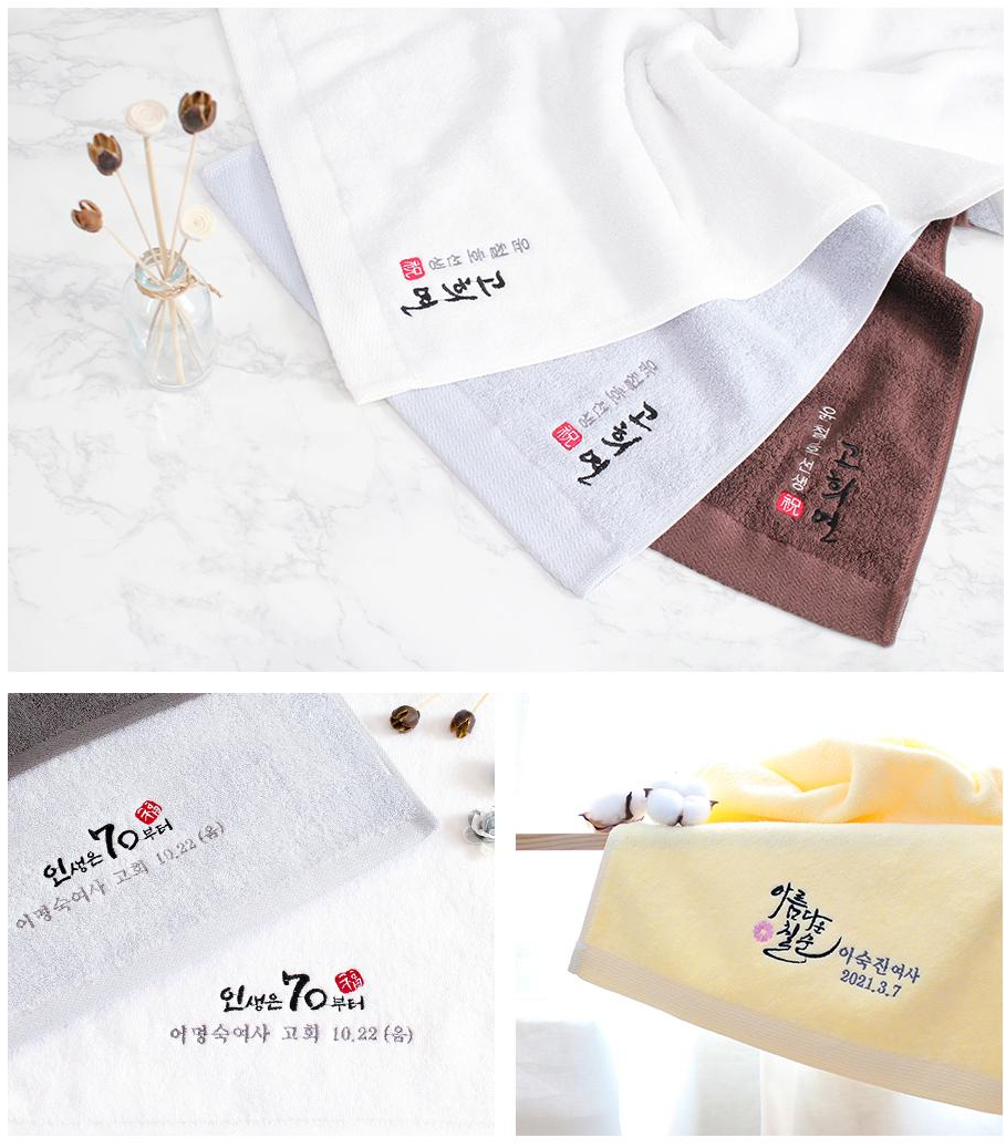 부모님과 어르신들의 생신 기념일에 참석한 가족, 친지들에게 감사를 전하는 품격 있는 답례품으로 적합합니다. - 결혼식 답례품 수건