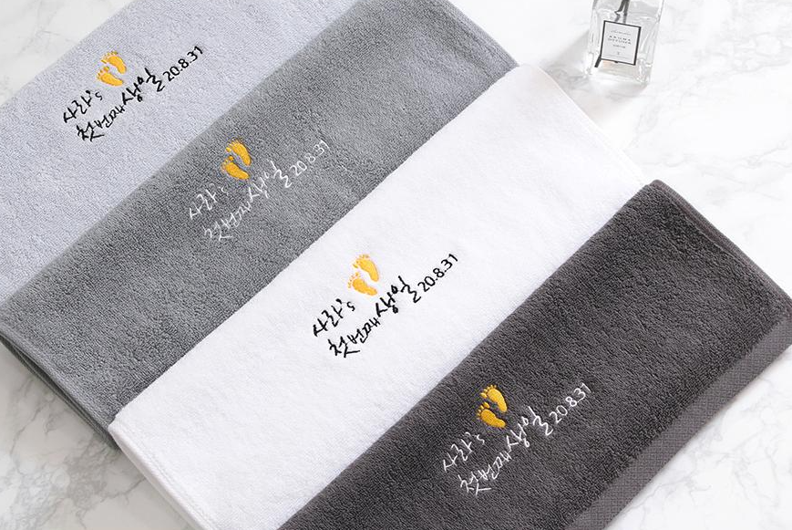 - 제직인쇄: 수건 자체에 로고나 디자인을 짜넣어 고급스러움을 극대화합니다.