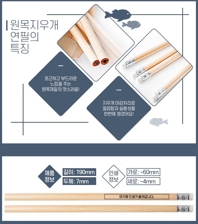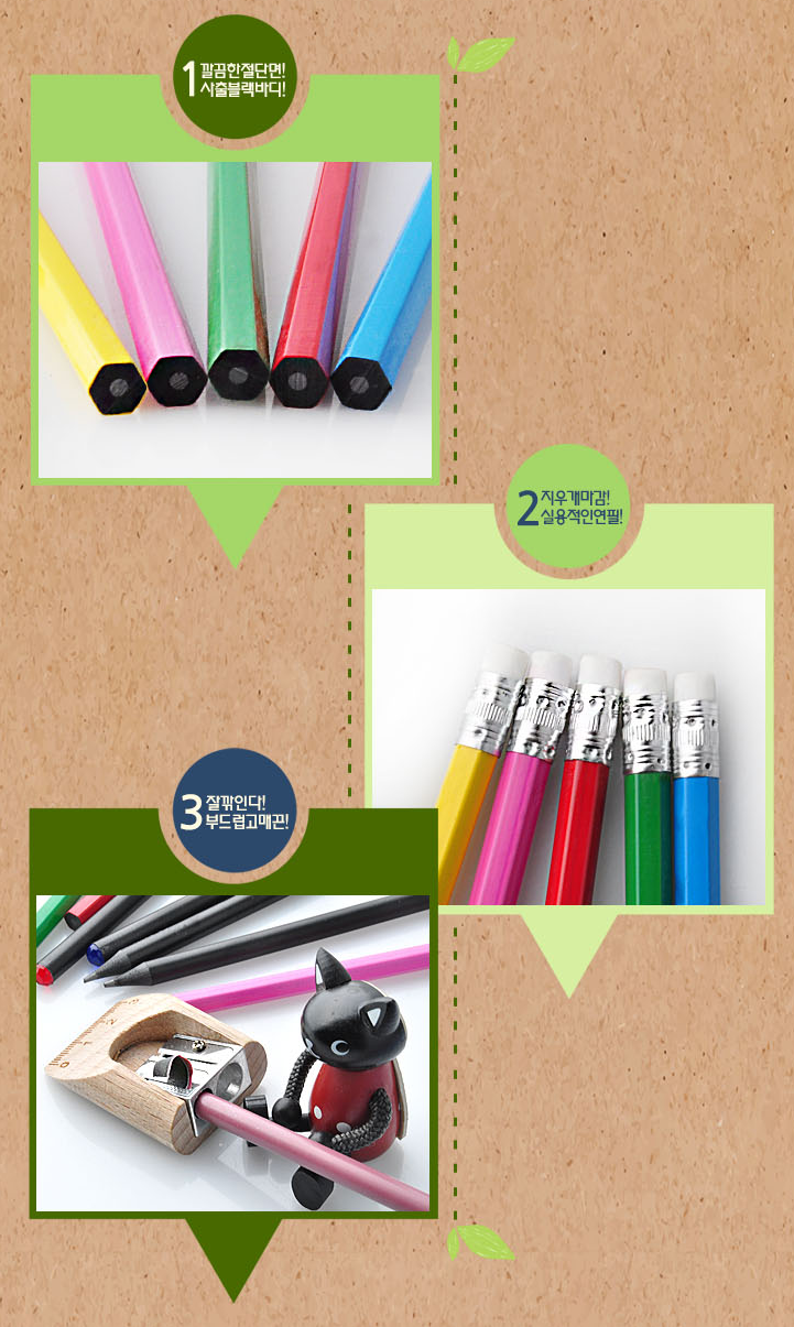 - 특징: 내추럴한 원목 느낌 그대로의 연필로 포근하고 깔끔한 마감처리가 돋보입니다.