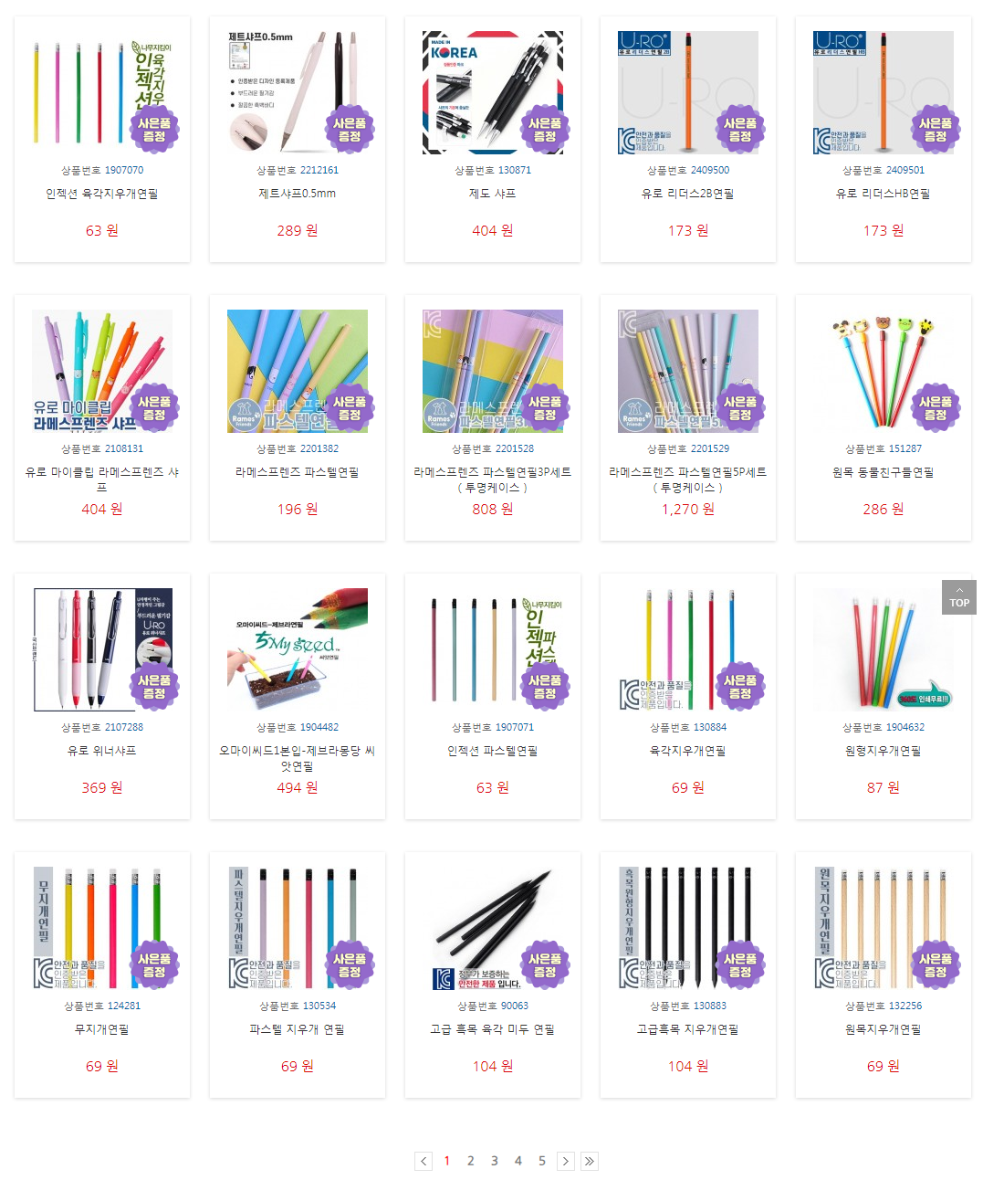 ⑤ 백색원형지우개연필