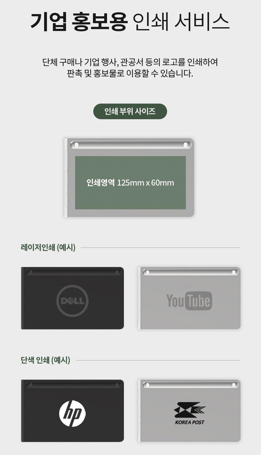 - 레이저 각인을 통한 기업 로고 삽입 가능