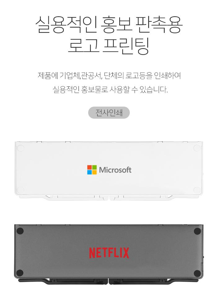 키보드는 업무 중, 학습 중, 또는 이동 중에도 매일 사용하는 필수 아이템입니다. 고객이 매일 키보드를 사용할 때마다 기업 로고와 브랜드 메시지를 자연스럽게 접하게 되므로 장기적인 브랜드 홍보 효과를 기대할 수 있습니다.