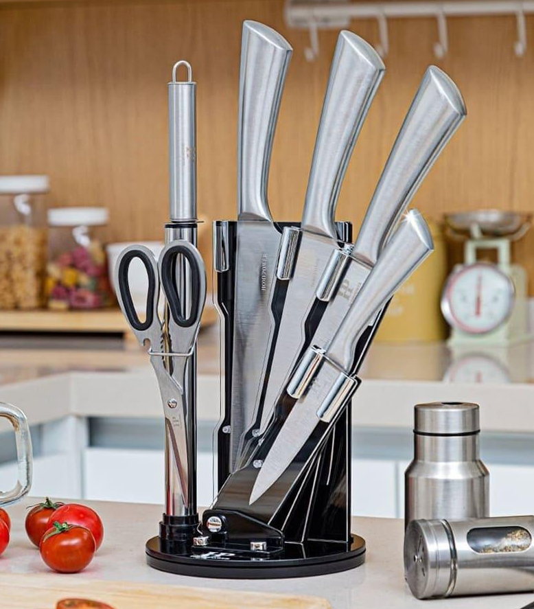 - 구성: 주방가위, 칼갈이, 중식도, 식도, 빵칼, 과도, 회전거치대
