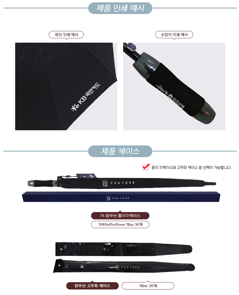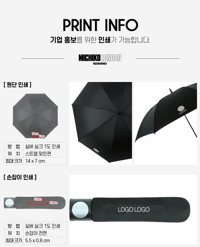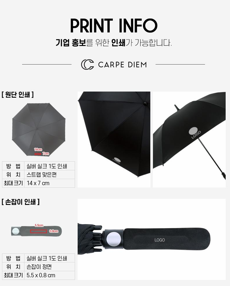 - 크고 넓은 우산천과 손잡이 인쇄로 브랜드 전달력이 높음