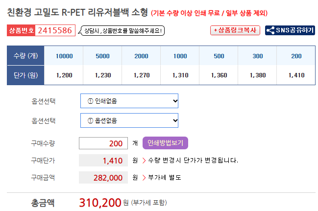 2. 리유저블백 소량제작도 가능한 유연한 조건