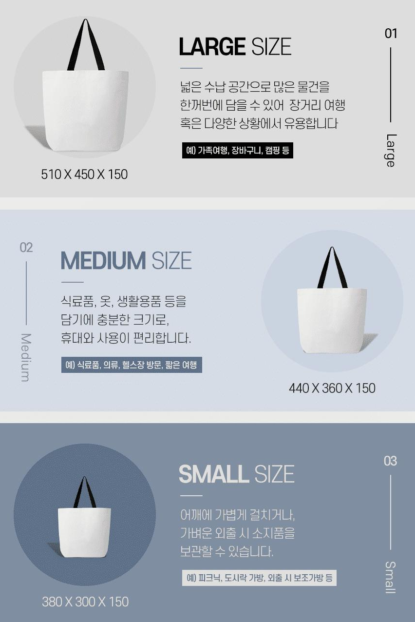 또한, 스타일에 따라 대·중·소 세 가지 사이즈를 선택할 수 있어 용도에 맞춘 제작이 가능합니다.