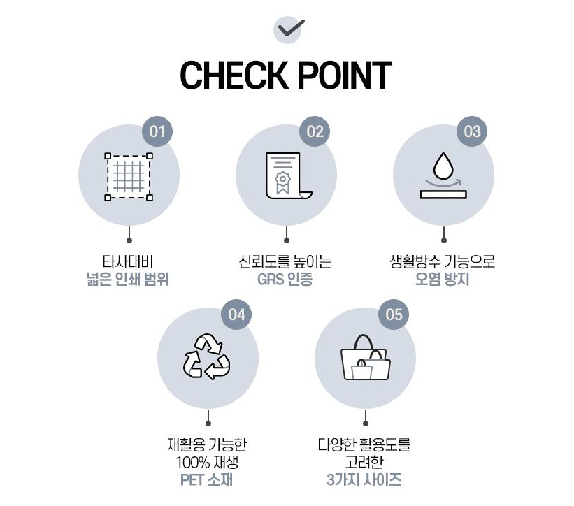 튼튼함은 물론, 재활용 원단이라는 상징적 가치까지 담고 있어 고객들에게 긍정적인 인상을 남깁니다.