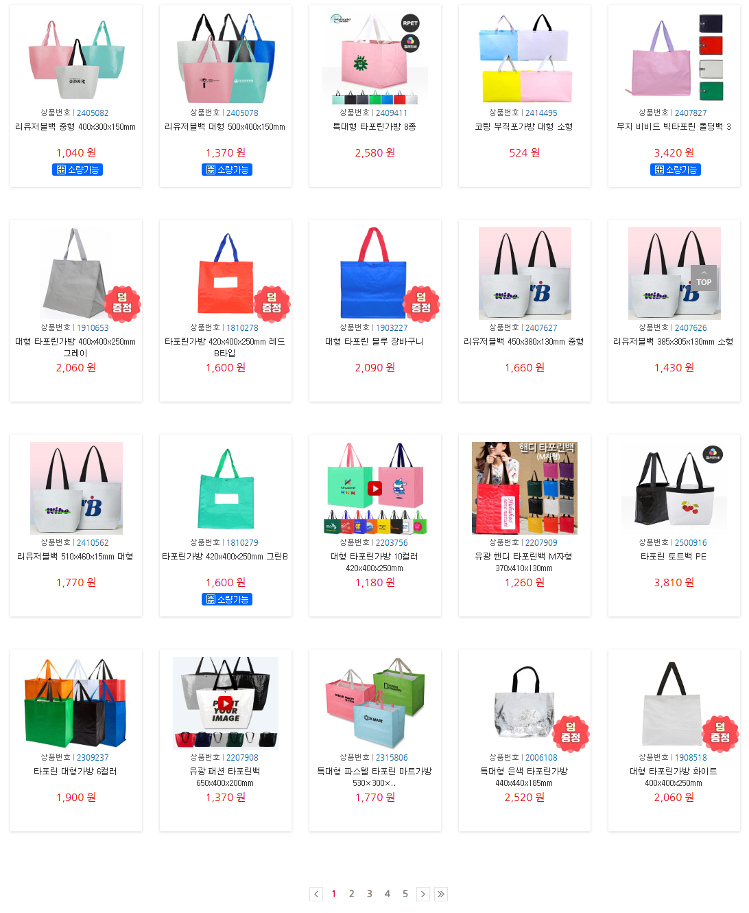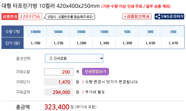 3. 추천 타포린백 인쇄 사양 및 단가 정보