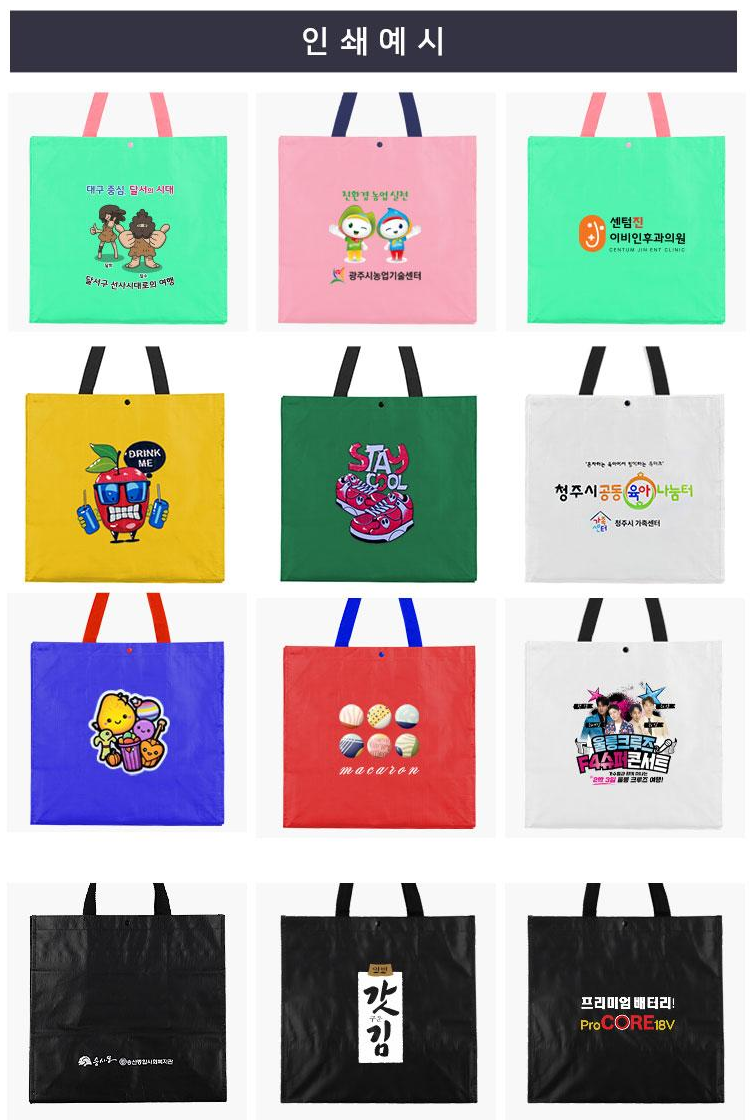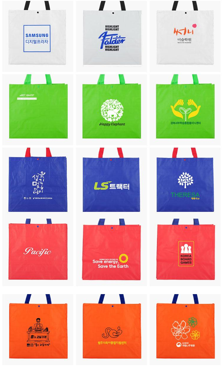 - 유통, 마트, 병원, 캠핑용품 전문 브랜드: 내구성 좋은 쇼핑백이 필요한 곳에서 효과적