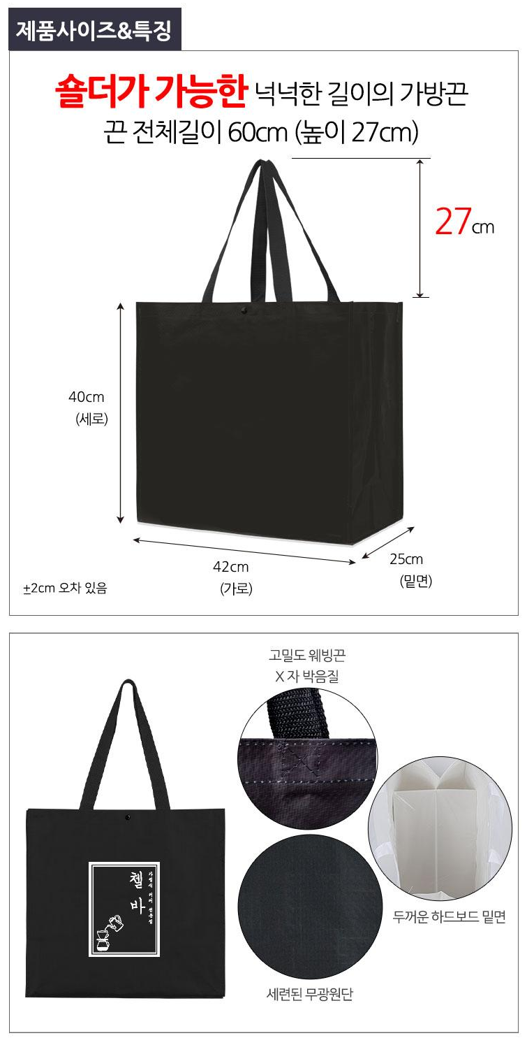 제품을 담는 가방 자체가 하나의 광고매체이자 실용적인 선물이 되기 때문입니다. 특히나 제품을 보호하면서도 대용량 수납이 필요한 상황이라면, 흔한 부직포 가방이나 에코백으로는 부족할 수밖에 없습니다.