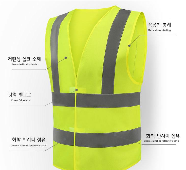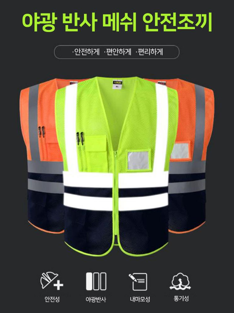 특히 형광색 안전조끼는 야간이나 악천후 환경에서도 가시성을 높여 안전에 크게 기여합니다.