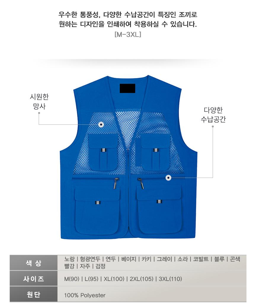 셋째, 여름철 망사 조끼처럼 계절에 맞춘 소재 선택이 가능해, 편안한 착용감을 제공합니다.