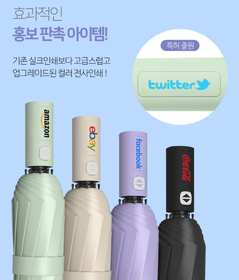 우산의 넓은 면적을 활용하여 다양한 디자인과 메시지를 인쇄할 수 있어 창의적인 마케팅 전략 구현이 가능합니다. 특히 전사인쇄 기술의 발달로 고품질의 인쇄가 가능해졌습니다.