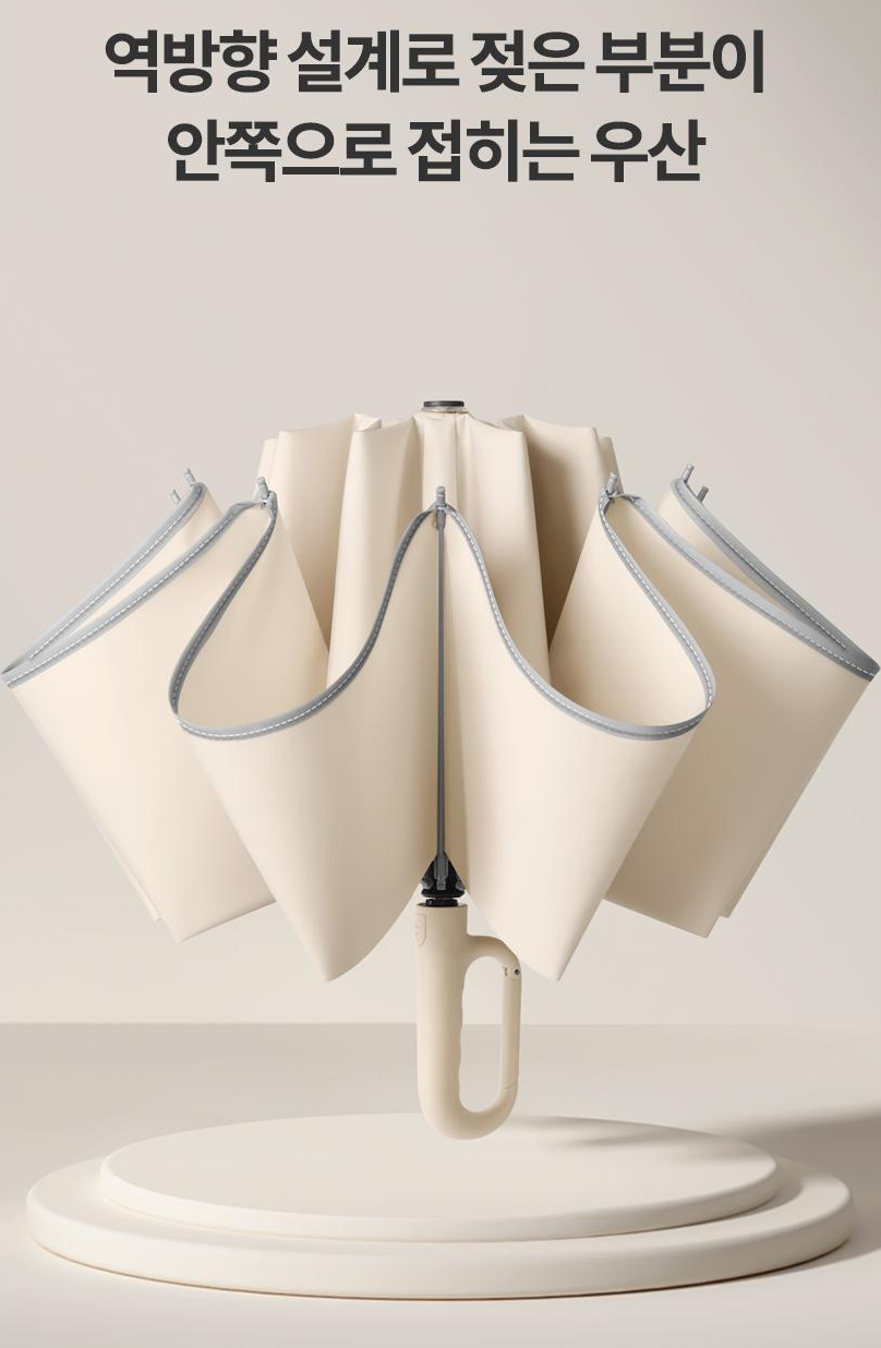 100개부터 제작 가능한 제품으로 베이지, 블로썸, 시안 블루, 제이드, 포레스트 그린, 그레이, 모던 블랙 등 다양한 색상을 제공합니다. 편리한 버클형 손잡이와 접었을 때 물기가 묻지 않도록 하는 역방향 설계가 특징입니다. 자동 온오프 기능과 야간 광반사, 나노 방수, 방풍 프레임이 적용되어 있습니다. 손잡이 및 원단 인쇄가 가능하며 3단 케이스가 무료로 제공됩니다. 우산 답례품 제작에 매우 적합한 제품입니다.