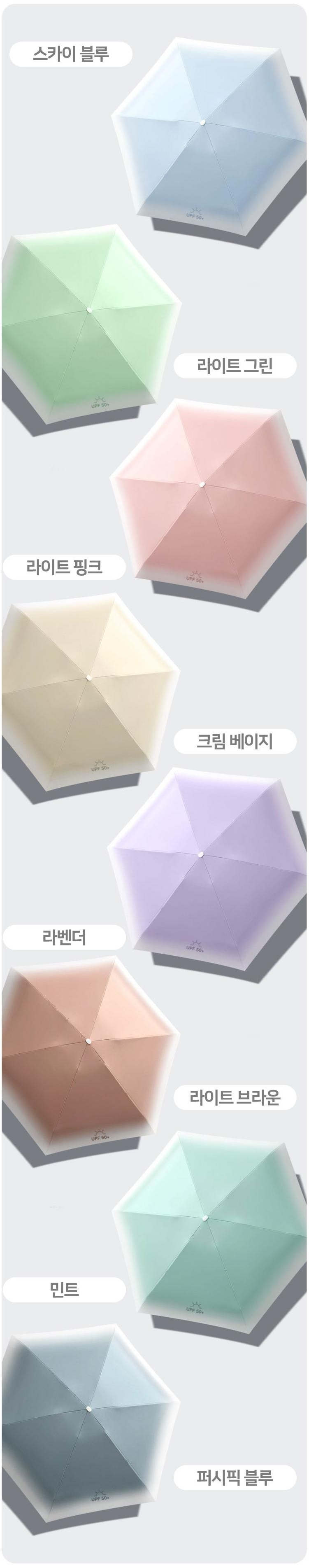 트렌디한 감성을 담은 프리미엄 미니 양우산입니다. 99% 자외선 차단과 UPF50+ 등급, 0% 투광율을 자랑하는 특별한 공법의 암막 원단을 사용했습니다. 스카이블루, 라이트 그린, 라이트 핑크, 크림 베이지, 라벤더, 라이트 브라운, 민트, 퍼시픽 블루 등 8가지 부드럽고 산뜻한 파스텔 색상과 트렌디한 그라데이션 디자인이 특징입니다. 초경량 무게로 휴대가 편리하며, 접었을 때 15cm의 미니멀한 사이즈로 가방에 쏙 들어갑니다. 우산 끈과 파우치에 인쇄가 가능하여 세련된 브랜딩을 연출할 수 있습니다.
