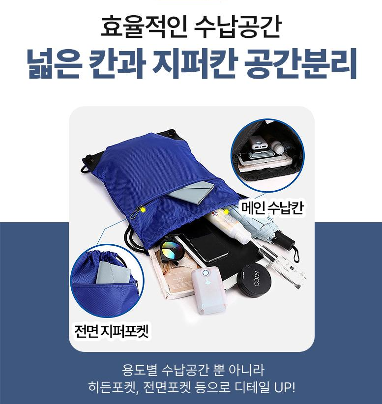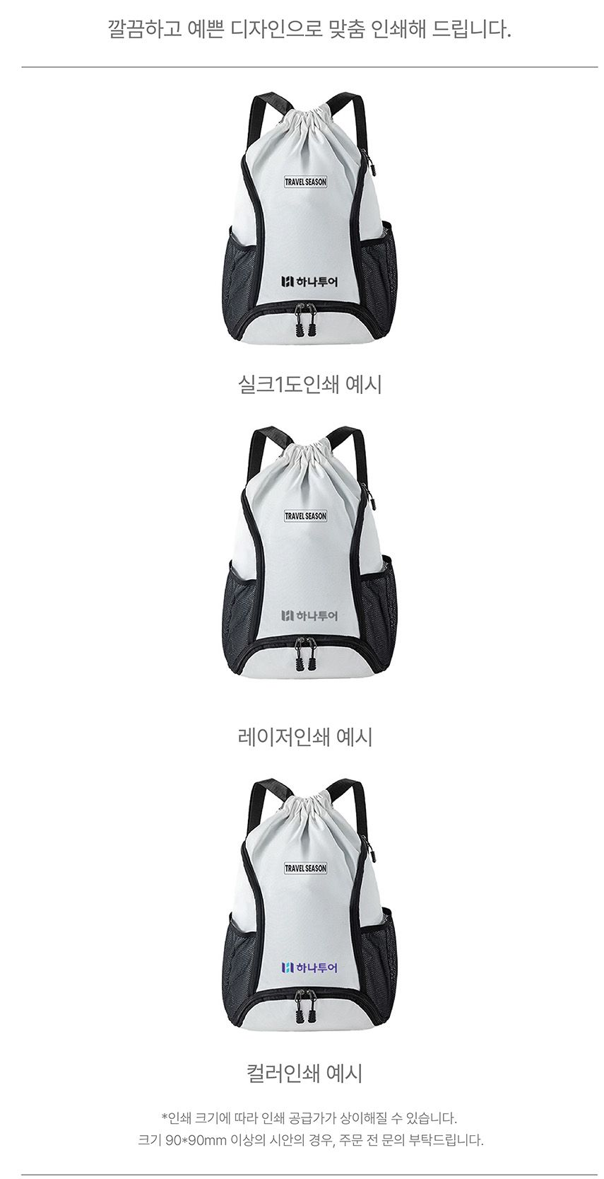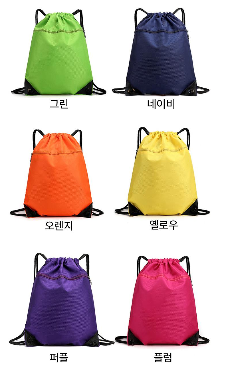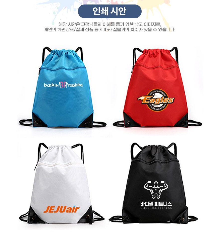 11가지 풍부한 색상 옵션(블루, 스카이, 레드, 화이트, 블랙, 그린, 네이비, 오렌지, 옐로우, 퍼플, 플럼)을 제공하여 브랜드 컬러에 맞는 선택이 가능합니다. 메인 수납칸과 지퍼칸의 효율적인 공간 분리, 히든포켓과 전면포켓의 실용적 구성이 특징입니다. 내마모성과 방수, 방염 기능을 모두 갖춘 옥스포드 원단을 사용해 내구성이 뛰어나며, 전면 컬러인쇄를 통한 홍보 효과도 기대할 수 있습니다.