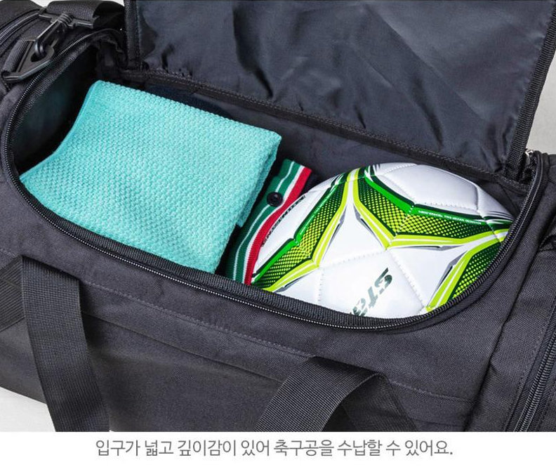 레드, 네이비, 블랙 색상으로 제작 가능한 더플백 타입으로, 헬스부터 축구, 야구까지 다양한 운동에 활용할 수 있습니다. 운동가방뿐만 아니라 여행용 보스턴백으로도 사용 가능하며, 양측면 포켓으로 수납이 편리합니다. 폴리 원단 사용으로 내구성이 좋으면서도 가벼우며, 입구가 넓고 깊이감이 있어 축구공도 수납할 수 있는 넉넉한 용량을 자랑합니다.