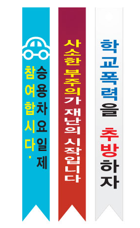 선거, 종교행사, 각종 캠페인, 시위, 기업 행사 등 어떤 목적이든 상관없이 최적의 어깨띠를 제작하여 여러분의 메시지가 효과적으로 전달될 수 있도록 최선을 다하겠습니다.