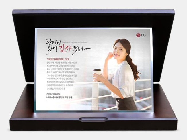가리비 형식의 원목 끼움 받침대 사이에 컬러인쇄판이 끼워지는 독특한 형태입니다. 선명한 사진인쇄가 가능해 인물 표현, 회사로고, 글씨 표현 모든 면에서 뛰어난 결과물을 얻을 수 있습니다.