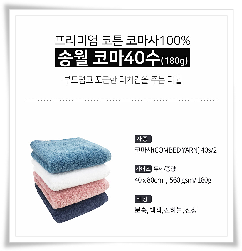송월타올 코마사 40수 호텔수건 180g을 기준으로,