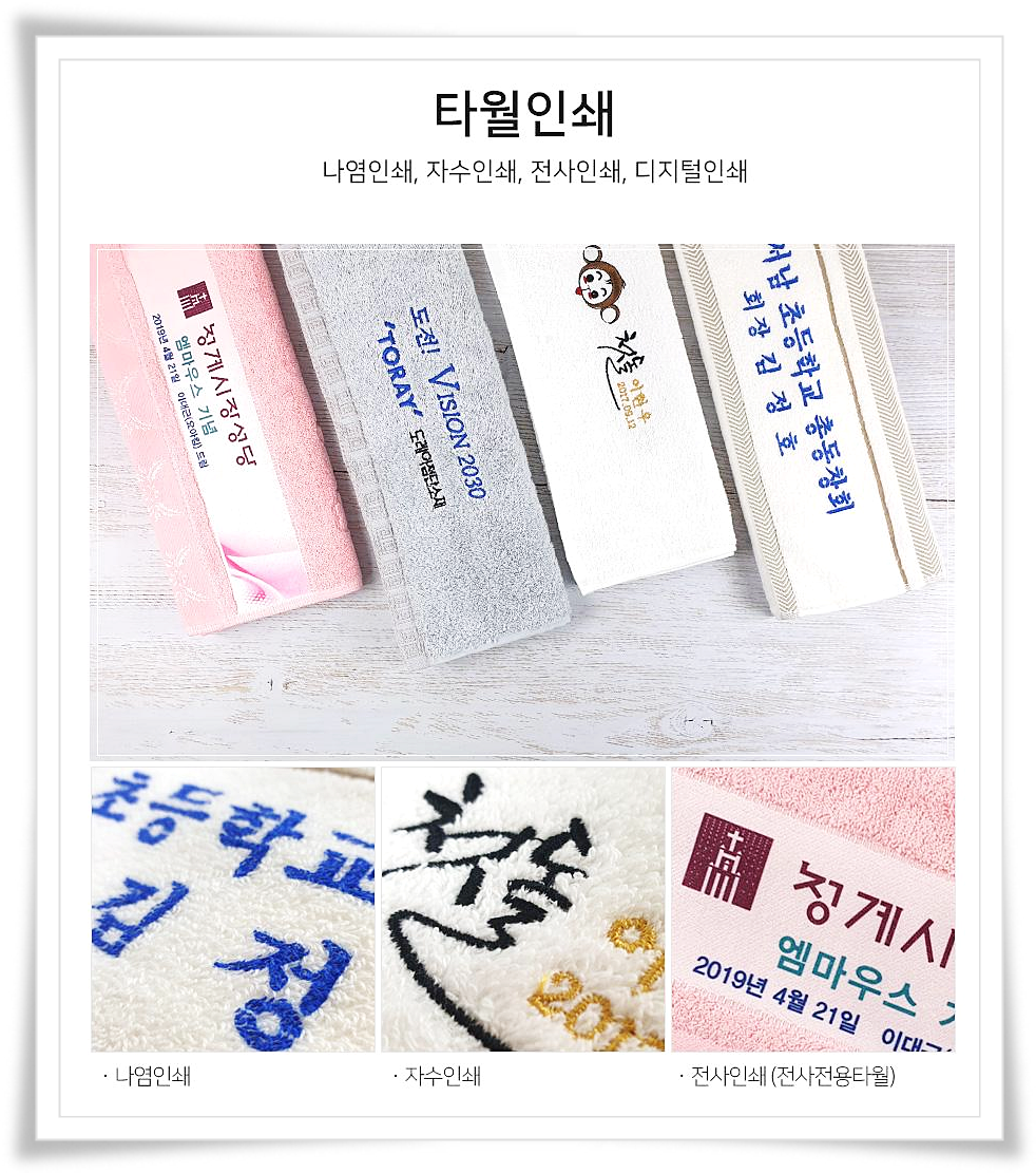 기념수건제작에서 품질 체감을 좌우하는 요소는 인쇄 방식이에요.
